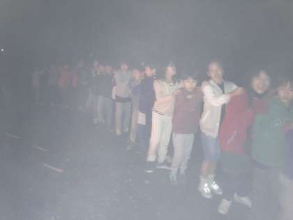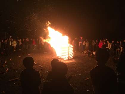 2日目のハイライトは、キャンプファイアでした。火の神の儀式のあと、歌って踊って、ゲームも楽しみました。最後は、ソーラン節も踊りました。