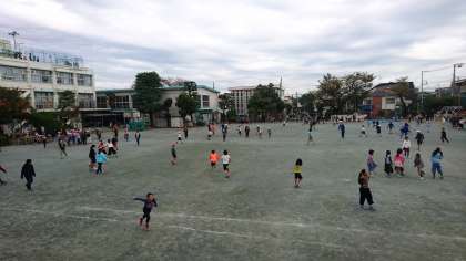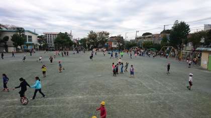 曇り空でしたが、長なわや一輪車をして過ごしている子どもたちを見かけました。(10月31日)