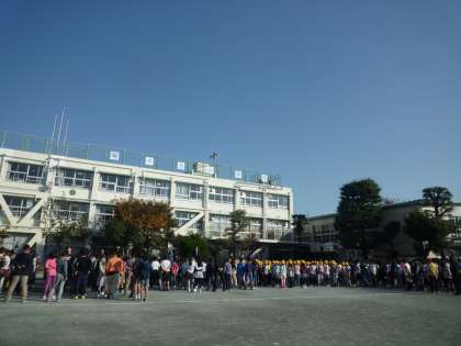 青空のもとでの全校朝会です。少し冷たい秋の風に、身も心もひきしまります。今日は、校長先生が「地域の行事に積極的に参加しましょう。」というお話をしてくださいました。