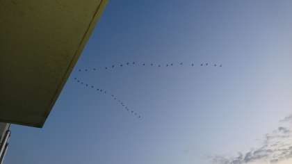 鳥が東から西に向かってきれいな列をなして飛んでいました。(11月13日)