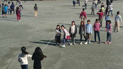 給食を終え、子どもたちは、長さなわをしたり遊具で遊んだりと楽しい時間を過ごしていました。(11月24日)