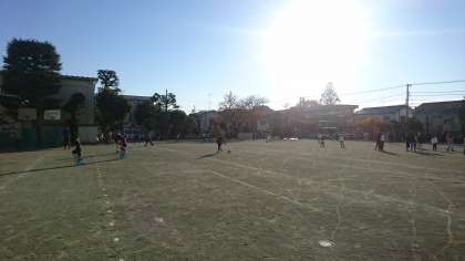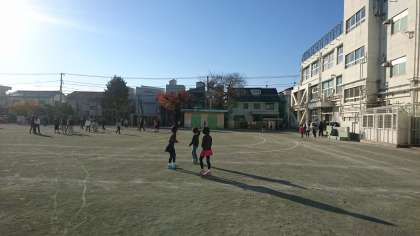 児童朝会が始まるまで校庭で元気に遊んでいる子どもたちの姿が見られます。(11月27日)