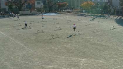 ハードルをリズミカルに跳んで記録を更新しようと練習していました。(11月27日)