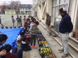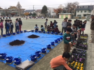 地域で花の栽培をしている農家の方に学校に来ていただき、3年生が花を選んで、育て方について教えてもらいました。自分の選んだパンジーやビオラを大切に育てていこうと思っている子がたくさんいました。ていねいに教えていただいた地域の農家の方々、本当にありがとうございました。(11月28日)