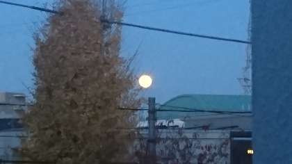 太陽が顔を出す頃、西の空には大きな月が見えました。(12月4日)