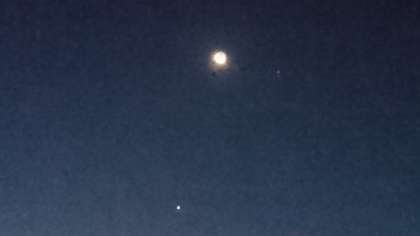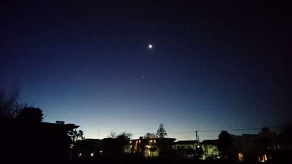 今朝も、東の空に見える月の近くに火星と木星がみえました。(12月14日)