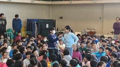 今朝の児童集会は、物あてクイズを行いました。(12月21日)