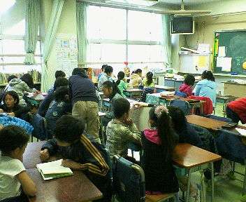 読書週間の取り組みの一つ、異学年の読み聞かせ交流がありました。高学年は低学年が気に入ってくれそうな本を選び、一生懸命読んでいます。低学年はそれを一生懸命聞いています。微笑ましい光景です。