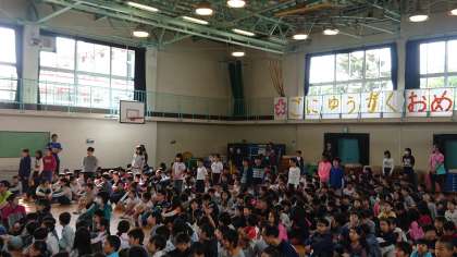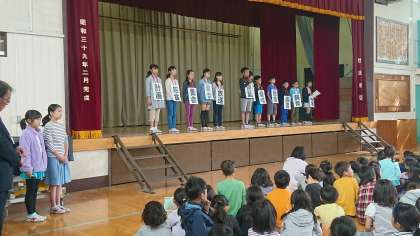 今朝の集会は、前期委員会の委員長紹介がありました。(4月16日)