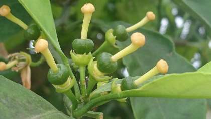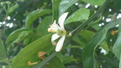 校庭のみかんの木にかわいらしい子房がつき始めました。(5月7日)