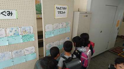 今日が運動会のマスコット投票最終日となりました。登校してきた子どもたちがどれになるのか楽しみにしています。(5月15日)