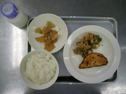 ごはん 牛乳 めかじきの照り焼き 五目豆 華風大根