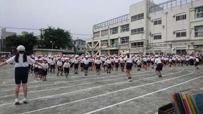 走ったり、踊ったり、今日はこれまでの成果を発揮する日です。100%のパフォーマンスを見せるためにも、ラジオ体操で、体と心のスイッチを入れます。(5月26日)