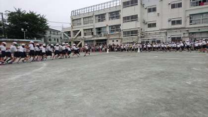 3年生の団体競技は力勝負のつな引きでした。このつな引きは、力だけでは勝てません。チームで助け合い協力できた方に勝利が待っています。(5月26日)