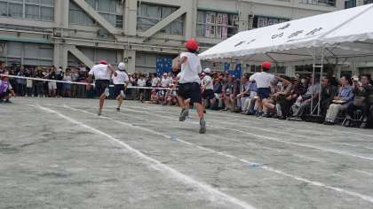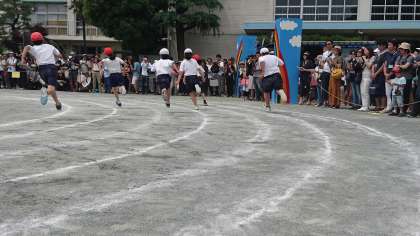 パワーあふれる4年生。力を出し切って全力でゴールに向かって走りました。上手にスタートが切れるようにがんばりました。(5月26日)
