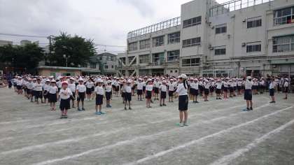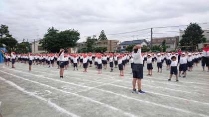 熱戦のくり広げられた今年の運動会も、次のプログラムが最後となりました。しっかりと体の緊張をときほぐし、素晴らしい運動会のしめくくりとしました。(5月26日)