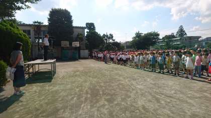 朝からよく晴れ渡っています。けさは、校長先生から水泳の話がありました。(6月4日)
