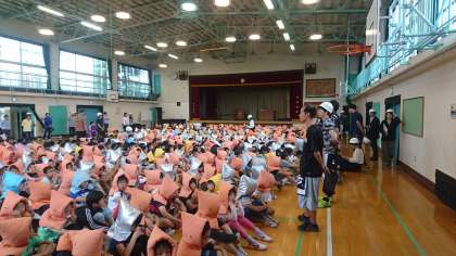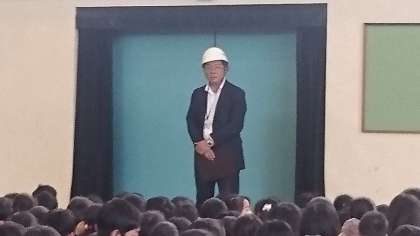 今日は、地震を想定した訓練でした。雨のため、起震車訓練はやりませんでした。(6月11日)