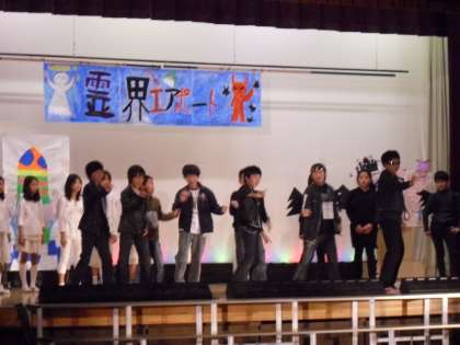 6年生は「夢からさめた夢」を演じました。好奇心旺盛でやさしい少女ピコは、夢の配達人から不思議な夢をもらいました。そこで出会った幽霊の少女マコと一日だけ入れ替わったピコ。幽霊の世界でいろいろな人に出会い、人のやさしさ、愛、命の大切さを知っていきます。