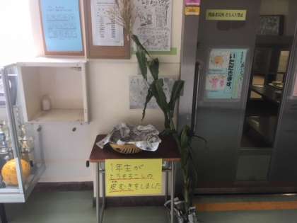 1年生がむいてくれたとうもろこしは、給食で全校でおいしく頂きました。(7月18日)