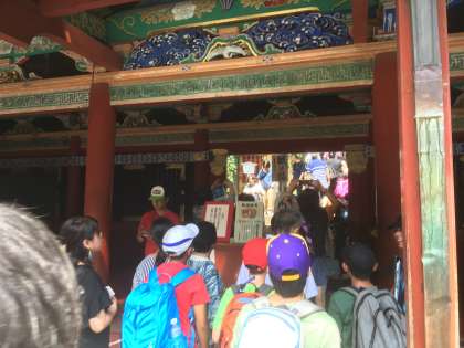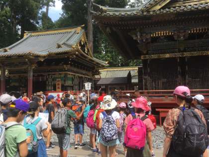 雨がやみ、日光東照宮を見学しました。今年は、ガイドさんの説明ではなく、自分たちが調べたことをもとに、友達に説明をしました。世界遺産にもなっている文化財の素晴らしさと伝統を感じました。(8月6日)