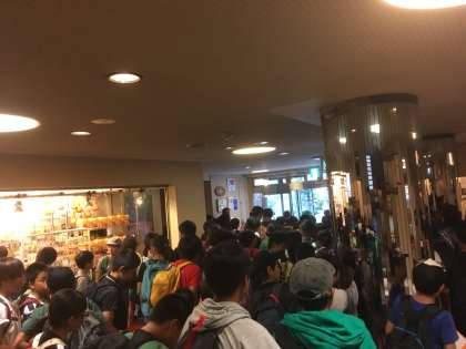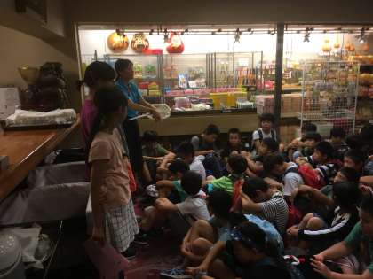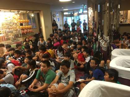 ホテル山月に着いて、開園式を行いました。ホテル山月の方が温かく出迎えてくれました。しばらく部屋で休み、避難訓練を行いました。(8月6日)
