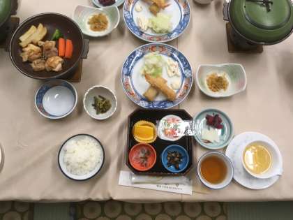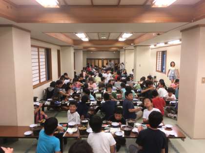 宿舎で初めての食事です。とっても美味しくて、男子も女子もお代わりをする人がたくさんいました。(8月6日)