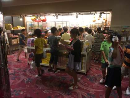 宿舎でお土産を買う時間です。家族のために、限られた予算の範囲で何を買うのか悩んでいました。(8月6日)