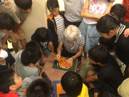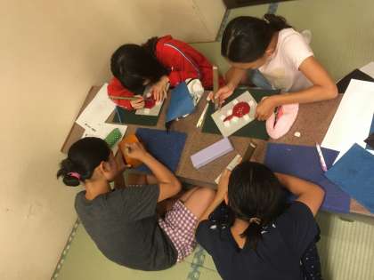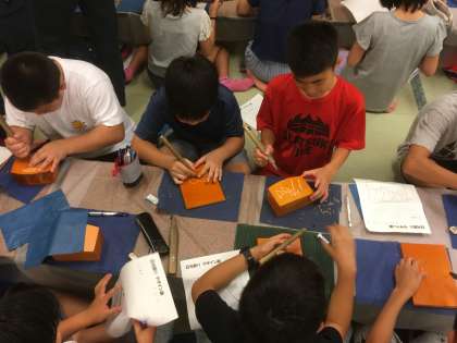 日光彫を体験しました。日光彫の彫刻刀が引っかき刀で、いつも使っているものと違うので、苦労しましたが職人さんに教えてもらいながら頑張りました。世界にひとつだけの自分の作品ができました。(8月6日)