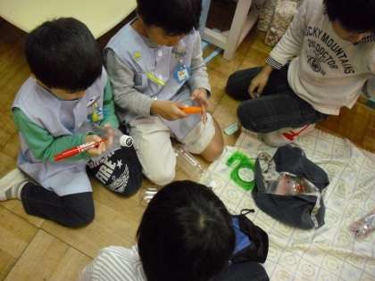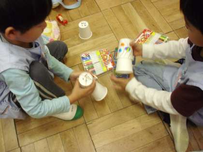 12月3日(金)に1年生と三島幼稚園年長組の交流がありました。1年生が、おもちゃの作り方を丁寧に教え、一緒に遊びました。立派なお兄さん、お姉さんです。