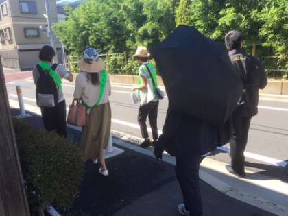 今年、新潟県で通学途中の小学生が殺害された痛ましい事件を受けて、本校でも、学区域の防犯上の危険箇所の点検を行いました。世田谷区教育委員会、玉川警察署、校長、PTAの校外委員の方々で、2時間以上かけて通学路を中心に学区域を歩いて回り、子供が連れ去られそうな可能性のある場所、危険な場所、破損している安全上の表示などを確認しました。確認してまとめたものは、世田谷区教育委員会に報告します。点検に協力していただいた皆様、本当にありがとうございました。(9月28日)