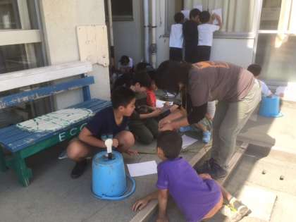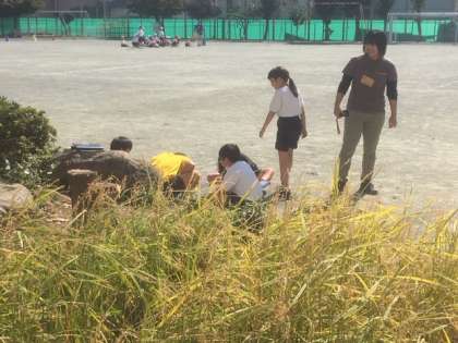 4年生が、本校の特色のある教育活動の一つである、ビオトープの植物や生物のついて学習しました。ビオトープ・ギルドの方たちに教えてもらいながら、ビオトープの植物や生物の様子をくわしく観察しました。いろいろな発見がありました。(10月22日)