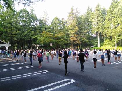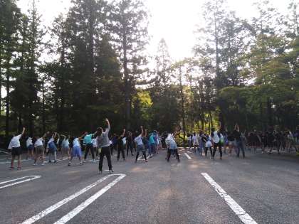 日光の空気を胸一杯に吸って、朝会です。