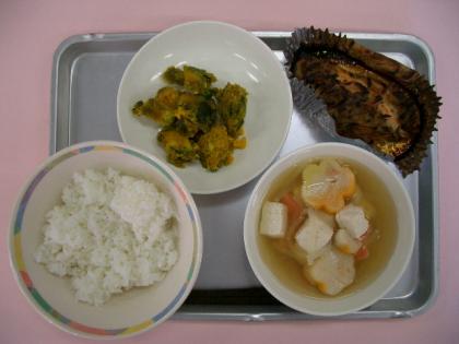 ごはん 牛乳 すまし汁 鮭のちゃんちゃん焼き かぼちゃの含め煮