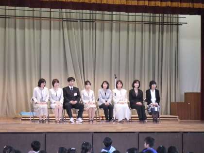 今年度、転出された先生方が離任式に出席して下さいました。懐かしい先生方に子どもたちも久々の再会を喜んだことでしょう。その後、職員室前では子どもたちが集まり、いつまでも別れを惜しんでいました。