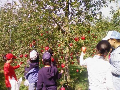 一人二つのリンゴを収穫します。今日、皆さんでお楽しみ下さい。