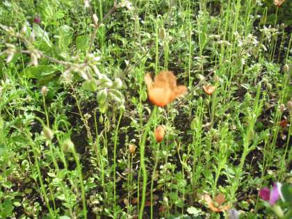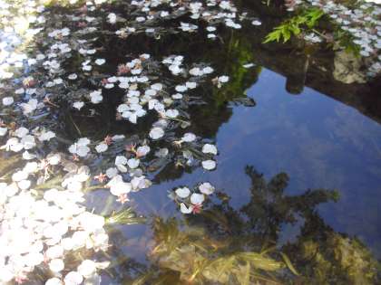 ビオトープにはおたまじゃくしがいました。プールの横には、たくさんの春の草花がさいていました。花を見ながら、みんなの顔を思いうかべました。