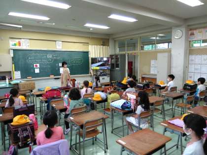 午前中は、半分の1年生が元気に登校し、健康チェックを受けて教室に入りました。1年生は、担任の先生の話をよく聞いて、学んでいました。2ヶ月の間、たくさんのことを学び、がんばってきたことが伝わってきました。すてきな1年生の「はじめの一歩」です。