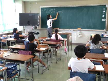 算数では、「大きな数」の復習に取り組み、一の位から順に4つの数字で区切ると分かりやすいことを確かめました。