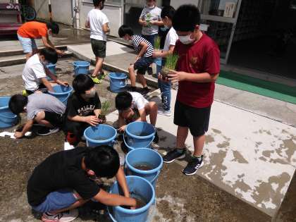 6月23日。5年生が田植え授業に取り組みました。