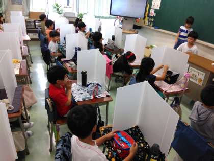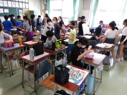 登校時の正門では、お弁当と水筒を大事に抱えて来る様子が見られました。何も持っていない子に、「お弁当は。」と尋ねると、「ランドセルの中です。」という返事が返ってきました。