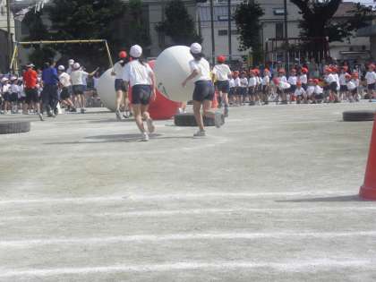最後は、全校児童による「大玉送り」です。全員の力を一つにして、がんばりました!