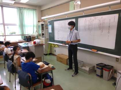 また、国語の詩を模造紙大に拡大し、表現の仕方が分かるように工夫しました。子どもたちの発言を書き加えて、学びを深めています。