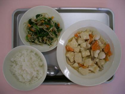 ごはん 牛乳 豆腐の五目いため 塩ナムル