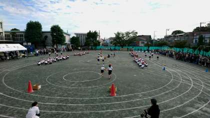 RUNフェスを行いました。4年生の団体競技「花を運んで心を一つに!」です。