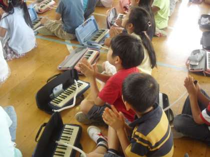 1年生は、けんばんハーモニカ教室です。楽しくけんばんハーモニカの学習ができました。