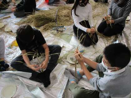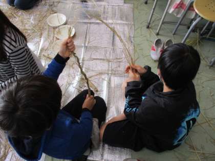 雁音農産の小野寺さんよりわらを送っていただきました。一人一人想いを込め、しめ縄を作りました。最後にクリスマスプレゼントとしてポン菓子をいただき、楽しい一日となりました。