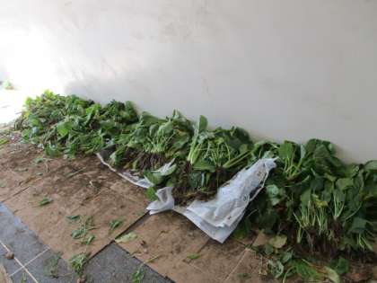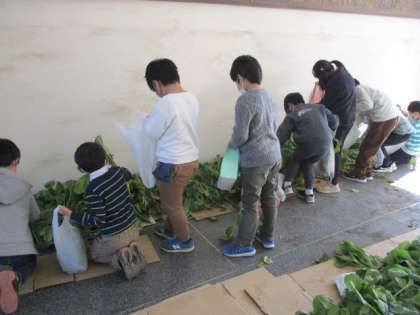 2年生は小松菜採りに行く予定でしたが、今年は子どもたちの代わりに、主事さん方が小松菜を採ってきてくださいました。子どもたちは、学校でその日に採れた小松菜を袋にたくさん詰めて持って帰りました。今日は、「甘くて柔らかくて美味しかったです。」と、家で食べた感想を発表しました。