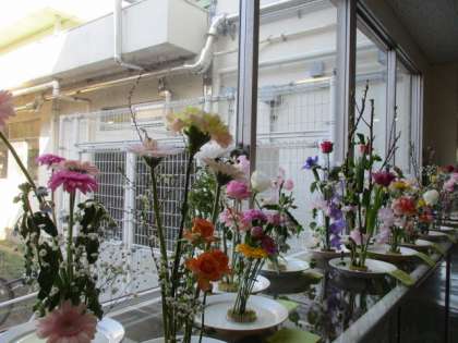 今週、伝統文化クラブでは、今年度2度目の「華道」を行いました。各自で準備した色彩豊かな花々の中から主となる花の長さを考えて切り、どの向きに生けたら一番美しく見えるだろうと、花々と真剣に向き合って生けていました。