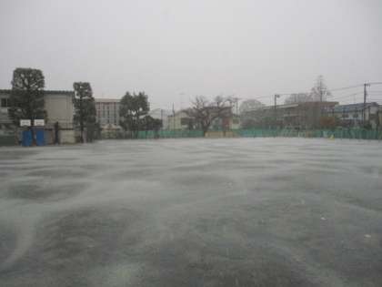 昼間は雨脚が強く、校庭に幾筋もの流れができ、池のようになったところもありました。